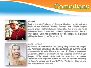 . Lining up plans in San Diego. Discover Comedy events happening next in San Diego CA United States. For two decades the National Comedy Theatre has been entertaining audiences of all sizes and types across the nation with our unique brand of.