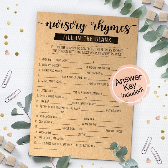 Nursery Rhymes Fill In The Blank Baby Shower Nursery Rhymes Etsy